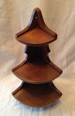 Title (ebay affiliate link): Small Corner Vintage wooden three tiered shelf for Knick Knacks