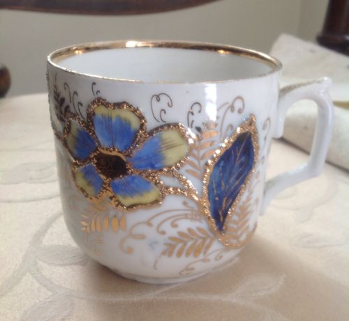 Title (ebay affiliate link): ANTIQUE GOLD COLORFUL FLOWER & LEAVES MUSTACHE CHINA CUP MADE IN GERMANY!