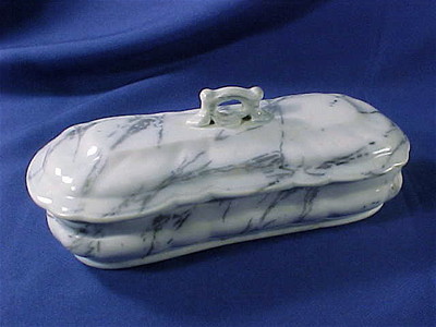 Antique ceramic tooth brush razor box marbelized Ironstone 19th C.