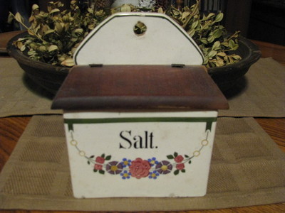ANTIQUE VINTAGE FLOWERED SALT BOX CROCK