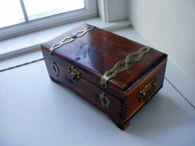 VINTAGE CEDAR & BRASS JEWELRY BOX CHEST