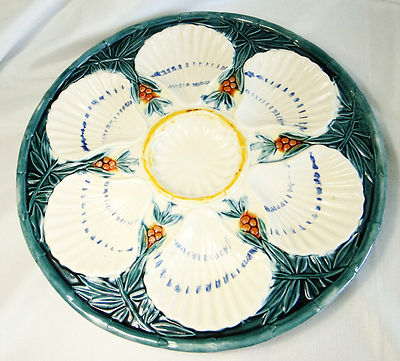 Title (ebay affiliate link): Vintage Scallop / Oyster Dish Plate Teal Branch Leaves & Berry Design
