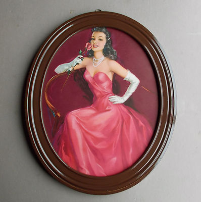 Title (ebay affiliate link): Antique wood Oval Frame Vintage pin up girl Devorss style woman with rose