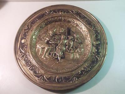 Title (ebay affiliate link): Brass Charger plate man playing violin for children vintage antique bridal 16"