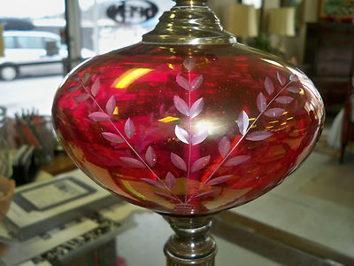 Gorgeous Cranberry Glass etched or cut to clear? marble base lamp
