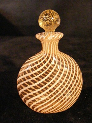 OLD VENETIAN ART GLASS PERFUME BOTTLE - SALMON W/STRIPES