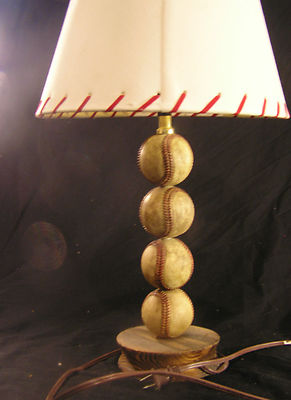 Rustic Stacked Baseball Lamp w/ Lampshade Wood Base Red Stiches