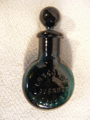 OLD DEEP GREEN GLASS PERFUME BOTTLE - LUSCOMBE'S LAVENDER SALTS