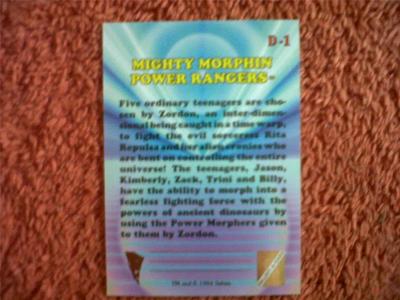 Title (ebay affiliate link): MIGHTY MORPHIN POWER RANGERS SERIES 2 HOBBY CASE CARD D-1 BY COLLECTACARD 1994