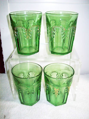 SET OF 4 GREEN DEPRESSION ERA JUICE GLASSES