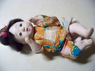 Title (ebay affiliate link): Vintage 7" Paper Mache Asian Doll (arms and legs movs- head rotates)
