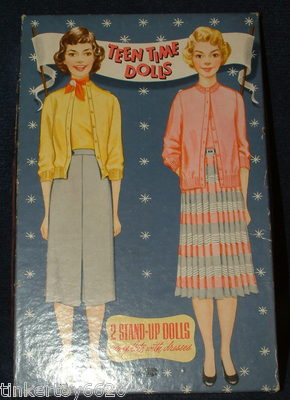 Title (ebay affiliate link): 1954 Whitman Teen Time Stand Up Paper Dolls # 2627:29 ~ Original Box