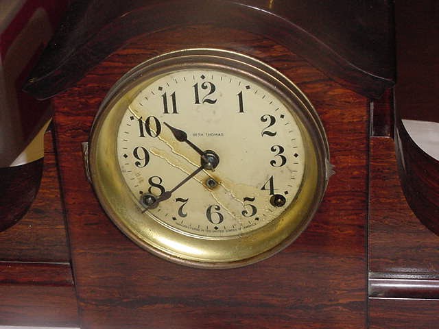 VINTAGE SETH THOMAS ANTIQUE MANTLE CLOCK Wood W/key