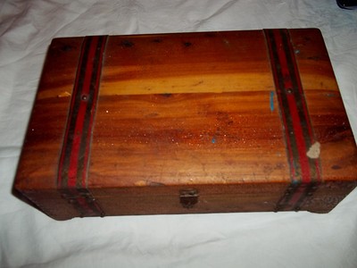 Antique Wooden and Metal Chest Box with Mirror
