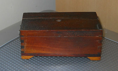 OLD WOODEN METAL HINGED TRINKET/JEWELRY BOX 1925
