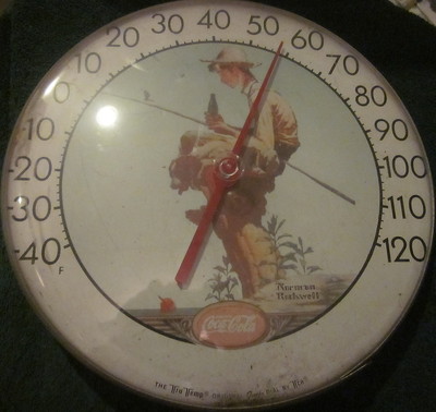 Title (ebay affiliate link): Tru Temp Coca-Cola Norman Rockwell Fishing Boy Round Wall Thermometer