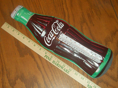Title (ebay affiliate link): Vintage Embossed Coca-Cola Coke Tin Bottle Advertising Thermometer 16 1/2" Tall