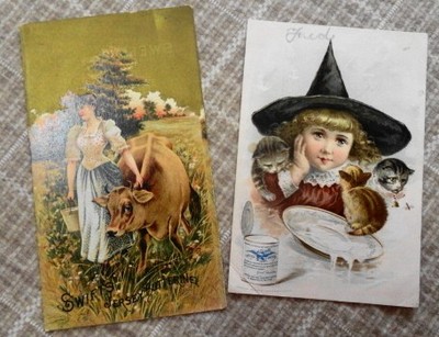 Title (ebay affiliate link): Little Girl in Witch's Hat w/ Kittens Trade Card-Bordens Milk, Swift's Butterine