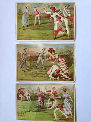 ATTENTION TENNIS PLAYERS.. 4 VICTORIAN TRADE CARDS
