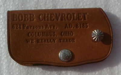 Vtg Bobb Chevrolet Leather Key Holder Key Ring Columbus, Ohio