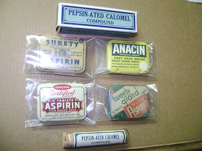 Title (ebay affiliate link): 5-OLD VINTAGE MEDICINE BOTTLES-TINS =ADVERTISING- PILLS