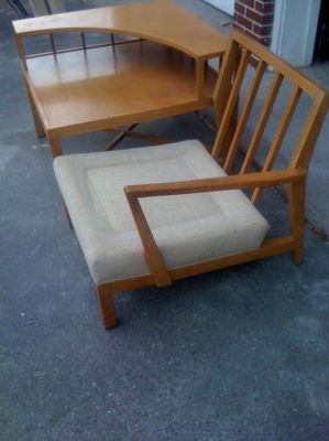 Title (ebay affiliate link): Blond Mid Century Lounge Chair with Matching Side Table