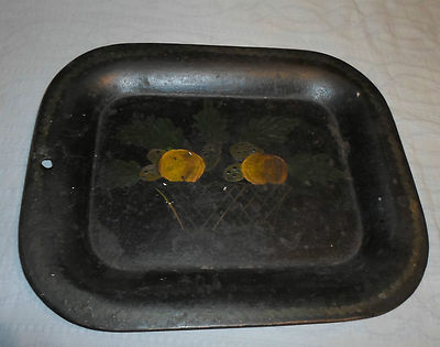 antique tole tin iron painted tray toleware early 1800s small fruit basket