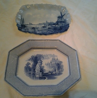 Circa 1800's Royal Copenhagen Cobalt Blue platter and Lacaona Castle scenery pla