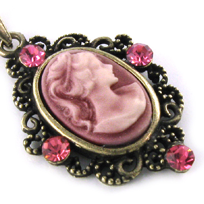 Title (ebay affiliate link): Antique Style Pink Cameo Rhinestones Pendant Necklace