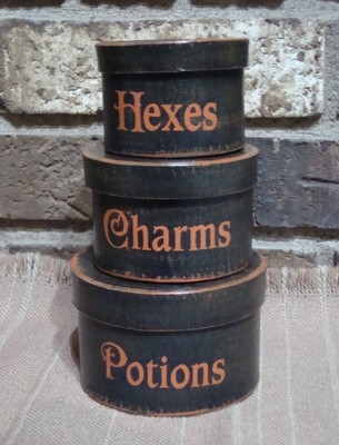 Title (ebay affiliate link): Primitive Style Halloween Sm Rnd Shaker Boxes HEXES ~ CHARMS ~ POTIONS Hp Black