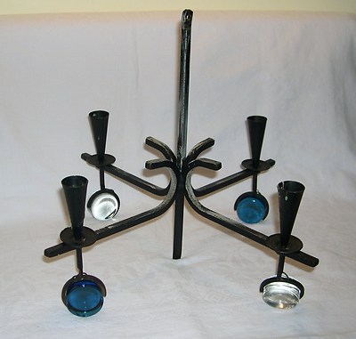 Title (ebay affiliate link): HANGING WROUGHT IRON 4 CANDLE STICK CHANDELIER WITH DANGLING GLASS PRISMS