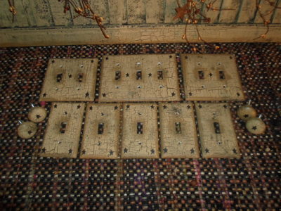Title (ebay affiliate link): ~Primitive Decor~ Lot Of Outlet Covers~ Knobs~Crackled~Farmhouse~~