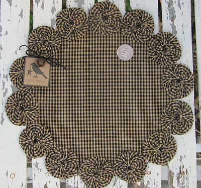 Title (ebay affiliate link): Homespun Black Tea Stained Crow Rusty Bell Cotton Fabric Yo Yo Candle Mat Doily