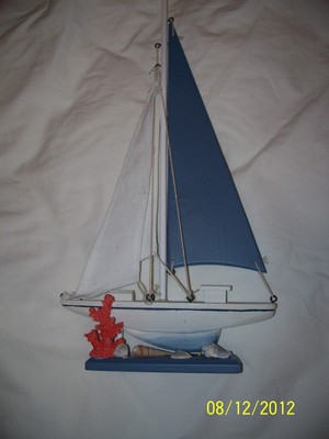 WOODEN SAILBOAT...CANVAS & WOOD SAILS...