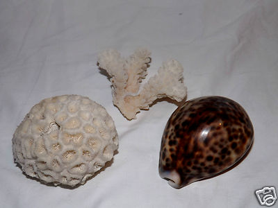 Title (ebay affiliate link): VINTAGE~TIGER COWIE SHELL + BRAIN CORAL + STICK CORAL~FROM ESTATE