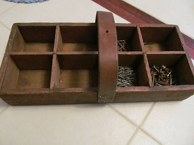 Title (ebay affiliate link): Primitive Carpenters box with Leather Handle and Cut Nails