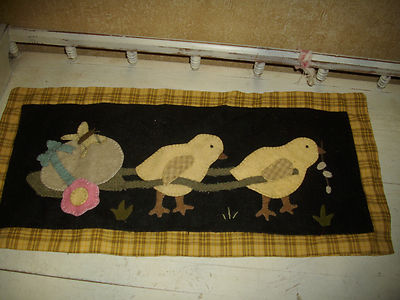 Title (ebay affiliate link): PRIMITIVE HOMESPUN CHICKS EASTER MAT/ FELT WOOL/ FOLK ART