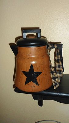 Title (ebay affiliate link): Primitive Crackled Vintage Small Metal Coffee Pot in Rusty Tin & Black Star