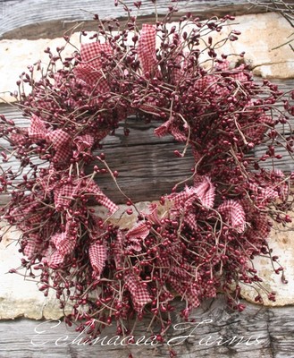 RAG & BERRY WREATH CENTERPIECE * PRIMITIVE BURGANDY CHECK * COUNTRY DOOR