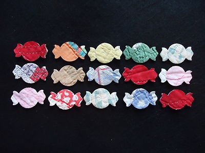 Title (ebay affiliate link): 15 PRIMITIVE ANTIQUE FOLK ART CUTTER QUILT PEPPERMINT CANDY PIECES - CUTE!!