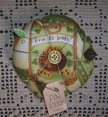Title (ebay affiliate link): Primitive Pinkeep Pin Cushion Gold Button Pinkeep St Patricks Day Pot of Gold