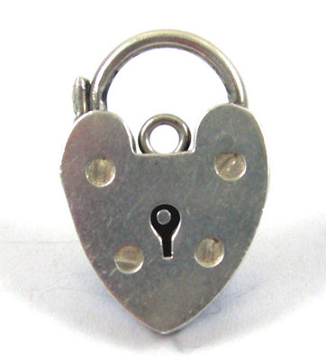 Title (ebay affiliate link): GOOD VINTAGE STERLING SILVER HEART PADLOCK CLASP CHARM BIRMINGHAM 1973 2 GRAMS