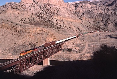 Title (ebay affiliate link): BNSF 5473 in Wind River Canyon, Original Kodak Processed Mounted 35mm Slide