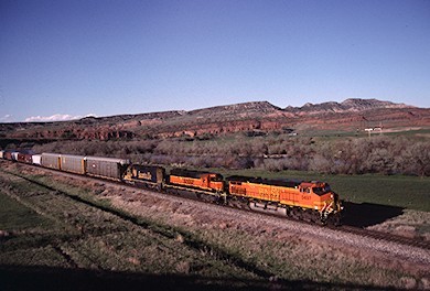 BNSF 5497 Leaving Thermopolis, Original Kodak Processed Mounted 35mm Slide
