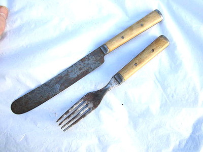Title (ebay affiliate link): CIVIL WAR PERIOD PAIR KNIFE & FORK BONE HANDLES WILLIAM ENDERS OAK LEAF 1860S