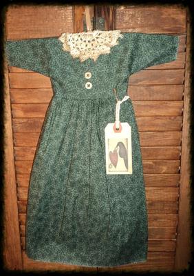 Title (ebay affiliate link): GRUNGY PRIMITIVE WALL~CUPBOARD DOLL DRESS GREEN CROW WITH HEART~FOLK~DECOR