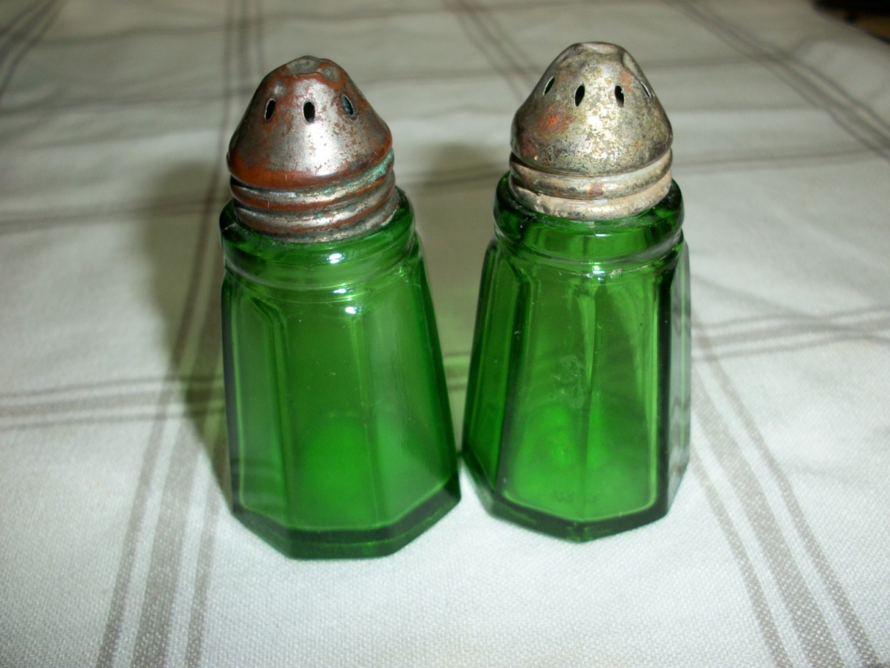 GREEN DEPRESSION GLASS SALT & PEPPER SHAKERS