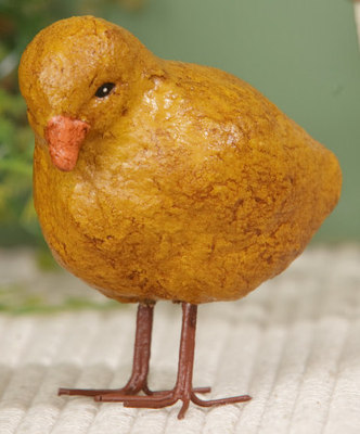 PRIMITIVE~SPRING CHICK WITH WIRE FEET~3"~NEW
