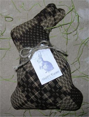 Title (ebay affiliate link): ANTIQUE Coverlet Brown/Oatmeal Tan Handmade BIG Easter Bunny Rabbit Shelf Sitter