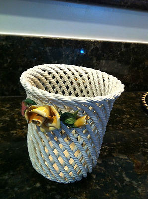 Vintage lattice weave italian capodimonte basket